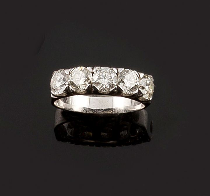 Fedina in oro bianco con cinque diamanti taglio brillante per complessivi ct 2,50 ca