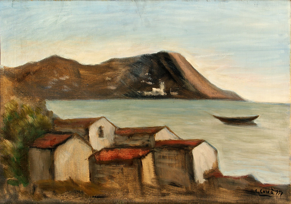 Carlo CARRA' (Quargnento 1881-02-11 Milano 1966-04-13) Il lago 1957 olio su tela cm. 50 x 70M. Carrà "Carrà. Tutta l'opera pittorica", vol. III, Edizioni dell'Annunciata, Milano 1968, p.295, n. 25/57 S. Pegoraro "Figure & figure", Galleria Marchetti, Roma, 2015, pp. 26-27, ill S. Pegoraro "Emilio Sobrero e i suoi amici", catalogo della mostra al Museo d'arte Moderna Vittoria Colonna, Pescara 2009, p. 31, ill. 7 Firma, data "C. Carrà, 957" (in basso a destra) Etichetta della Galleria dell'Annunciata (al retro) Firma, data "C. Carrà, 957" (in basso a destra) Etichetta della Galleria dell'Annunciata (al retro) Autentica a cura della Galleria Volos, Roma