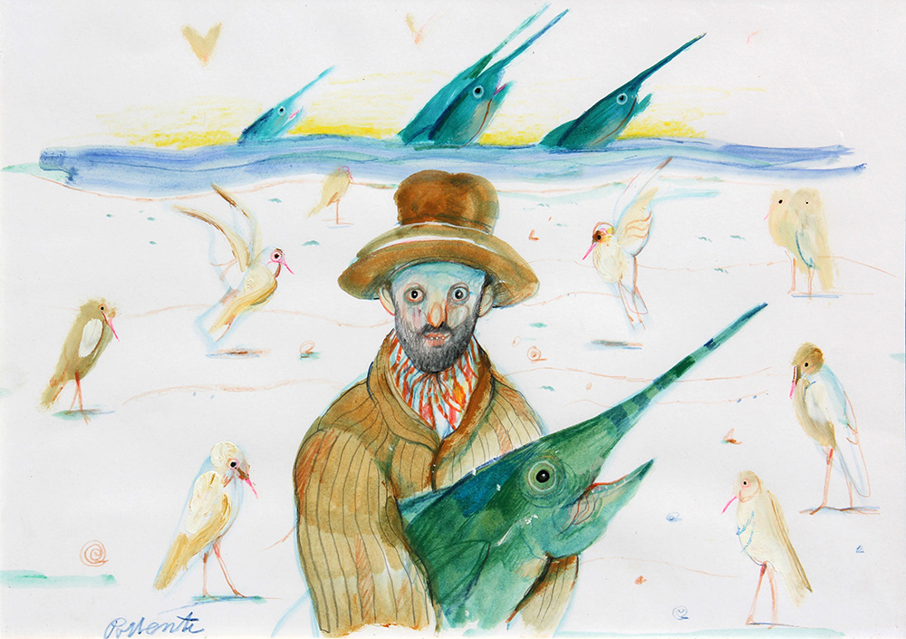Antonio POSSENTI (Lucca 1932-12-11 Lucca, 2016 ) Pescatore di pesci spada 1998 tecnica mista su cartone cm. 35 x 50Firma "Possenti" (in basso a sinistra) Firma "Possenti" (in basso a sinistra) Autentica dell'artista su fotografia Autentica dell'Archivio delle Opere del maestro Antonio Possenti, con n. 1619