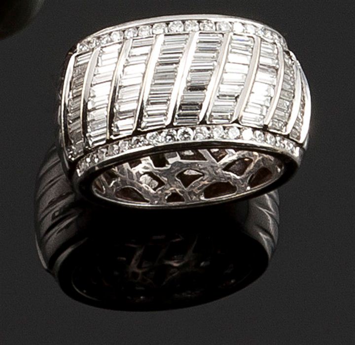 Lotto 982 | ANELLO Anello in oro bianco, a fascia, con diamanti taglio baguette...