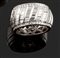 Anello in oro bianco, a fascia, con diamanti taglio baguette incorniciati da due file di diamanti