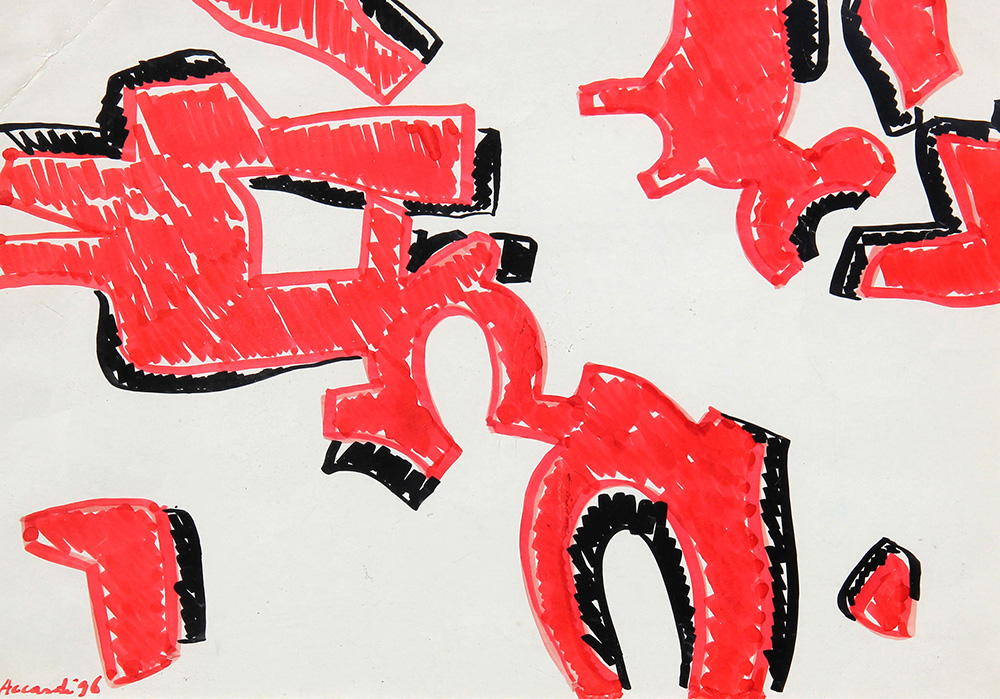 Carla ACCARDI (Trapani 1924-10-09 Roma, 2014 ) Rossonero 1996 pennarello su carta cm. 25 x 35Firma, data "Accardi, 96" (in basso a sinistra) Firma, data "Accardi, 96" (in basso a sinistra) Autentica dell'artista su fotografia, con n. 52