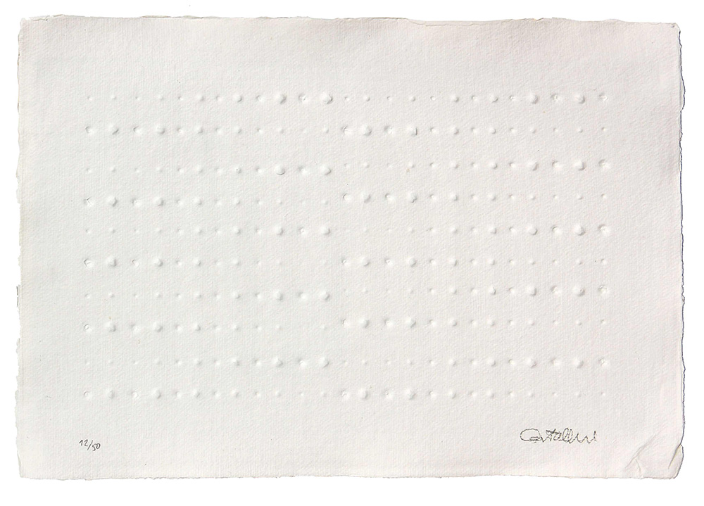 Enrico CASTELLANI (Castelmassa 1930-08-04 Celleno 2017-12-01) Superficie 2016 carta estroflessa cm. 30 x 42Edizione di 50 esemplari Numerazione "12/50" (in basso a sinistra); firma "Castellani" (in basso a destra) Etichetta e timbro dello Studio d'arte Cadrama (al retro) Edizione di 50 esemplari Numerazione "12/50" (in basso a sinistra); firma "Castellani" (in basso a destra) Etichetta e timbro dello Studio d'arte Cadrama (al retro) Conferma di autenticità della Fondazione Enrico Castellani (per email) in data 8/10/2018