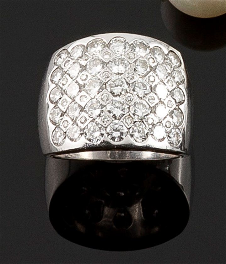 Lotto 985 | ANELLO Anello in oro bianco, a fascia, con pavè diamanti taglio brillante per...