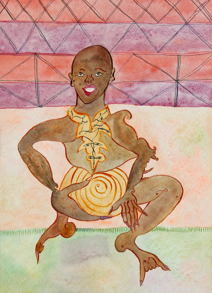 Luigi ONTANI (Vergato 1943-11-24 ) Abdoullà in Burkina stà anni 90 (1990 - 1999) acquarello su carta cm. 48 x 36Titolo, firma "Abdoullà in Burkina stà, Ontani, Bobo" (al retro) Titolo, firma "Abdoullà in Burkina stà, Ontani, Bobo" (al retro) Certificato di provenienza delle Gallerie Orler, Favaro Veneto