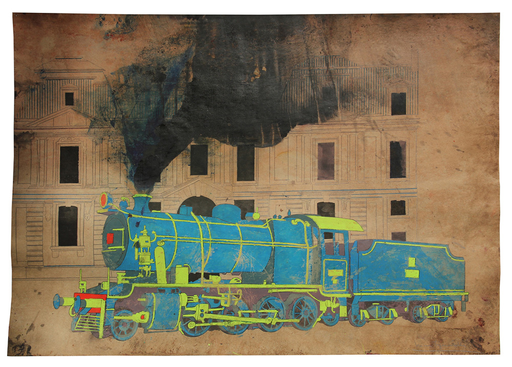 Luca PIGNATELLI (Milano 1962-06-22 ) Treno tecnica mista su carta elaborata...