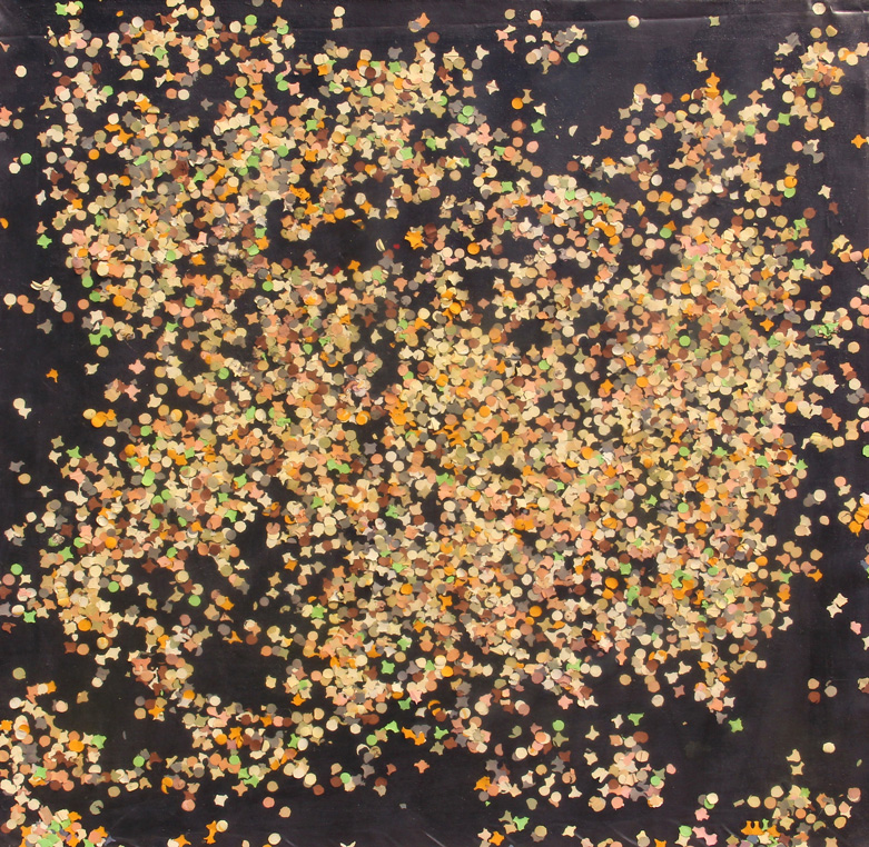 Tano FESTA (Roma 1938-11-02 Roma 1988-01-09) Coriandolo 1984 acrilico coriandoli e plastica su tela cm. 80 x 80Firma, data "Festa, 84" (al retro) Firma, data "Festa, 84" (al retro) Autentica a cura dello Studio Soligo Archiviazione Opere Tano Festa, con n. RMS84808041709