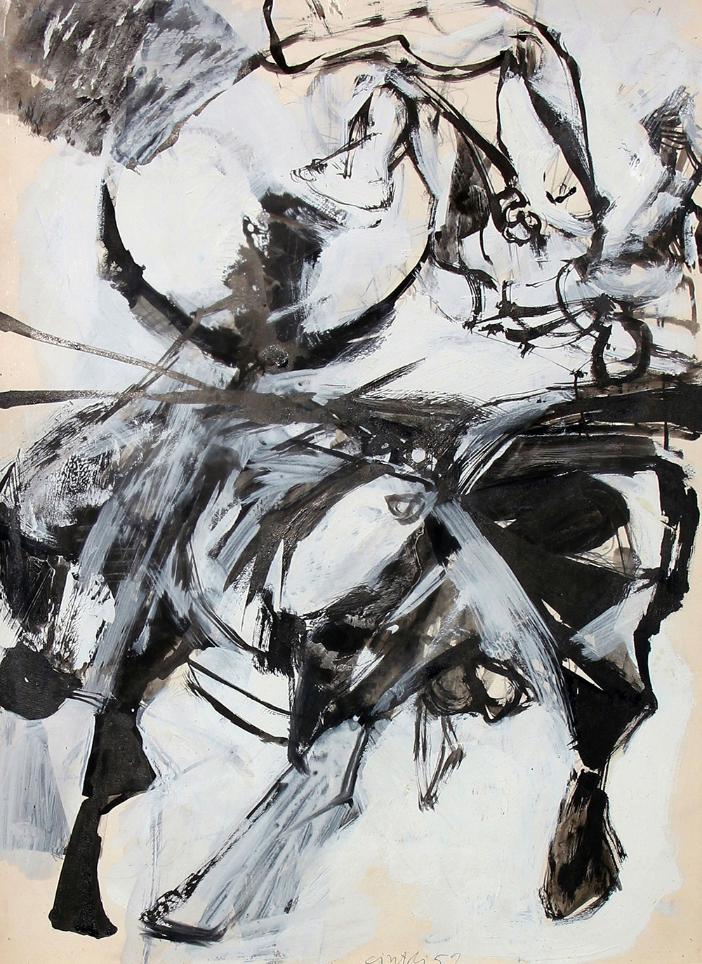 Claudio CINTOLI (Imola, 1935 Roma, 1978 ) Corrida 1959 pittura su cartoncino cm. 69.5 x 49.5Firma, data "Cintoli, 59" (in basso al centro) Firma, data "Cintoli, 59" (in basso al centro) Autentica a cura di Vittorio Cintoli su fotografia