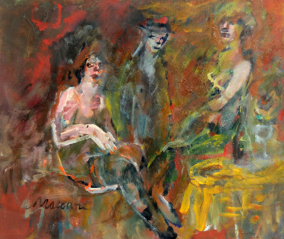 Mino MACCARI (Siena 1898-11-24 Roma 1989-06-16) Senza titolo anni 60 (1960 - 1969) olio su tavola cm. 40 x 50Firma "Maccari" (in basso a sinistra) Firma "Maccari" (in basso a sinistra) Autentica dell'Archivio delle Opere del Maestro Mino Maccari, con n. 4458