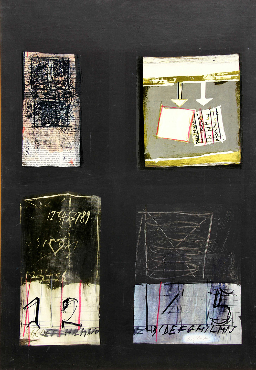 Giorgio CELIBERTI (Udine 1929-11-19 ) Impresso nella memoria 1988 acrilico e tecnica mista su tela cm. 70 x 48Datazione doppia: 1988-89 Firma, titolo, data, misure "Celiberti, Impresso nella memoria, 1988-89, 48x70" (al retro) Datazione doppia: 1988-89 Firma, titolo, data, misure "Celiberti, Impresso nella memoria, 1988-89, 48x70" (al retro)