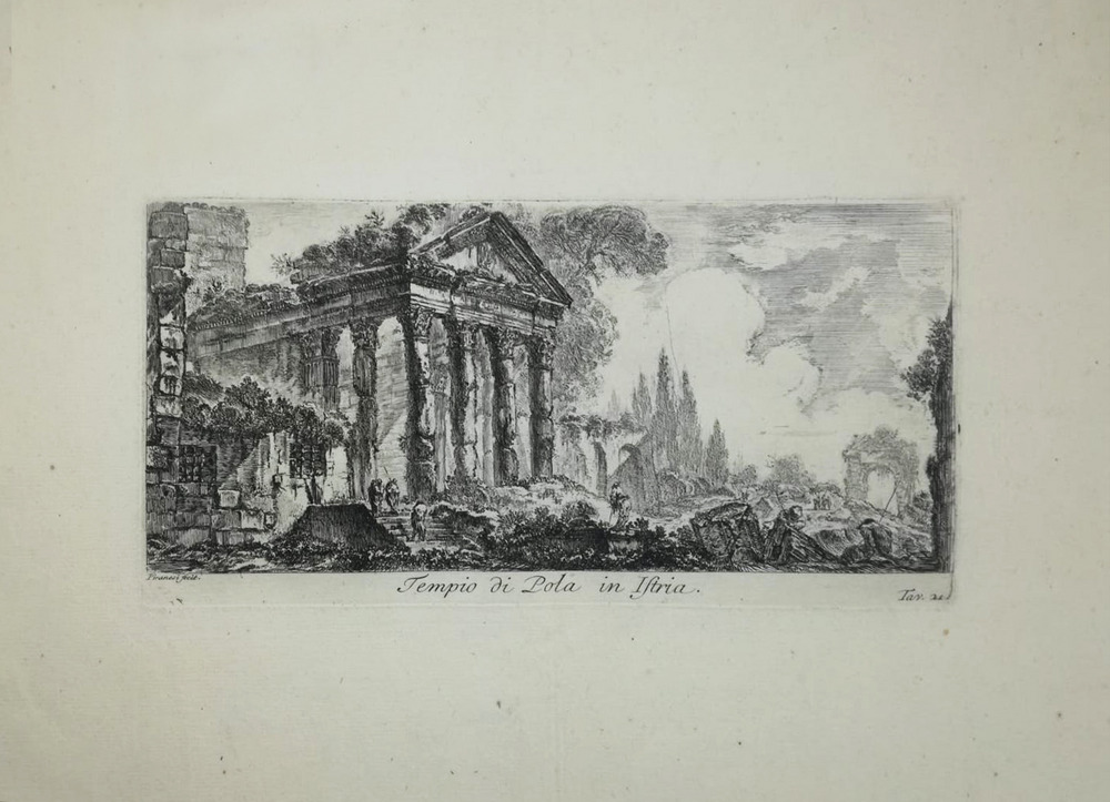 Tempio di Pola in Istria. Acquaforte. mm 125x256. Focillon, 63