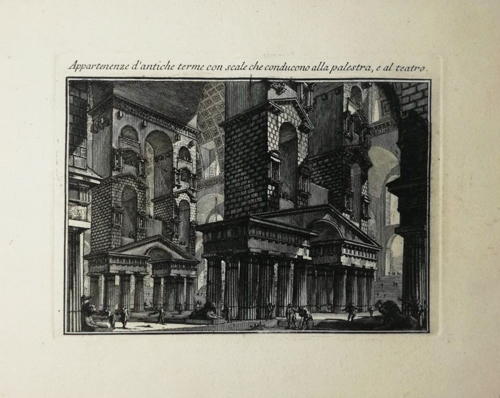 Appartenenze d’antiche terme con scale che conducono alla palestra e al teatro. Acquaforte. mm 150x218. Focillon, 126