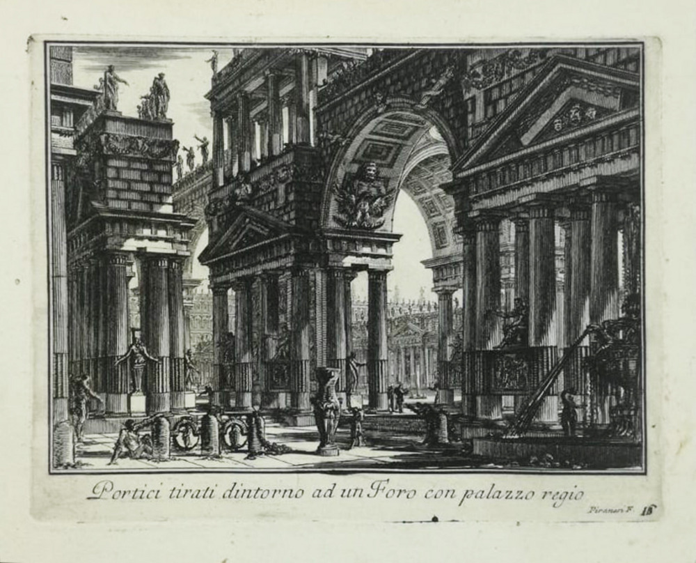 Portici tirati dintorno ad un foro con palazzo regio. Acquaforte. mm 162x217. Focillon, 127