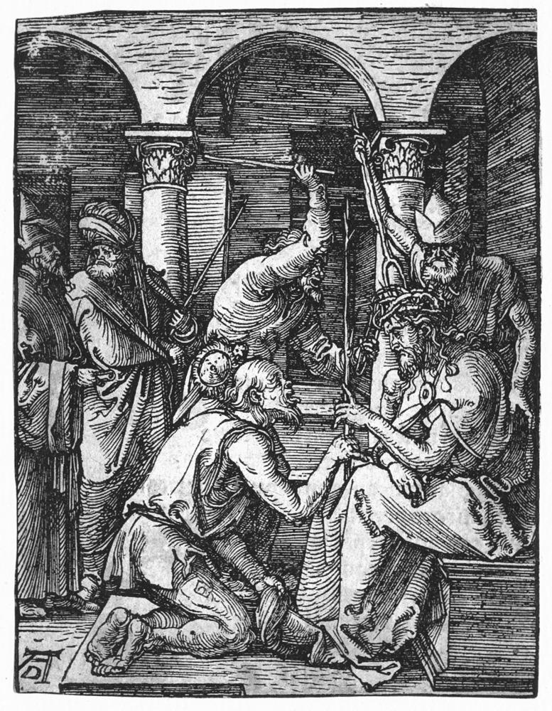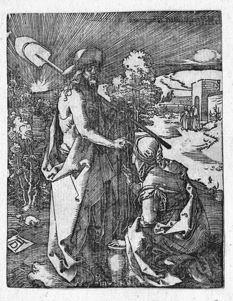 Albrecht Durer CINQUE TAVOLE DALLA PICCOLA PASSIONE Xilografie. mm 125x98 ca. ciascuna. Cristo coronato di spine. Meder, 143. La resurrezione. Meder, 154. Noli me tangere. Meder, 156. Cristo appare ai discepoli ad Emmaus. Meder, 157. Pentecoste. Meder, 160. Rifilate intorno o poco oltre la linea marginale. Alcuni difetti e restauri. (5)