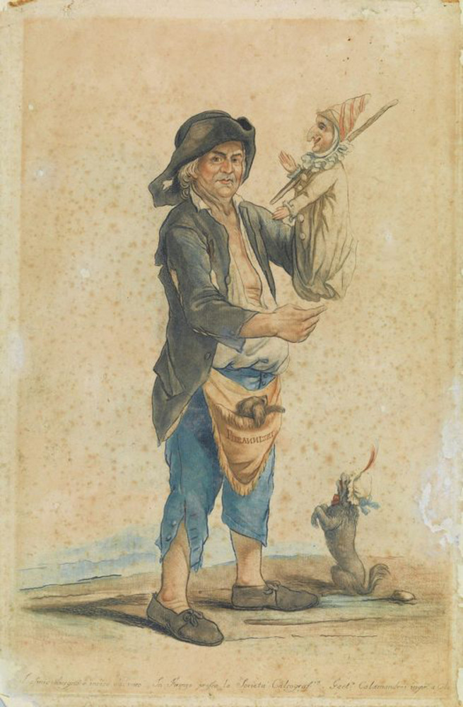 Carlo Lasinio DODICI RITRATTI DI PERSONE FACETE CHE SERVONO A DIVERTIRE IL PUBBLICO FIORENTINO Serie completa di 12 incisioni realizzate all’acquaforte e acquatinta a colori. mm 400x255 ca. ciascuna. Stampate da Gaetano Calamandrei e pubblicate a Firenze intorno al 1790 dalla Società Calcografica. Cassinelli, XIV. Belle impressioni stampata con colorazione fresca. Margini variabili da foglio a foglio ma sempre oltre l’impronta della lastra. Controfondate. Ossidazione diffusa, alcuni mancanze o fori di tarlo. (12)