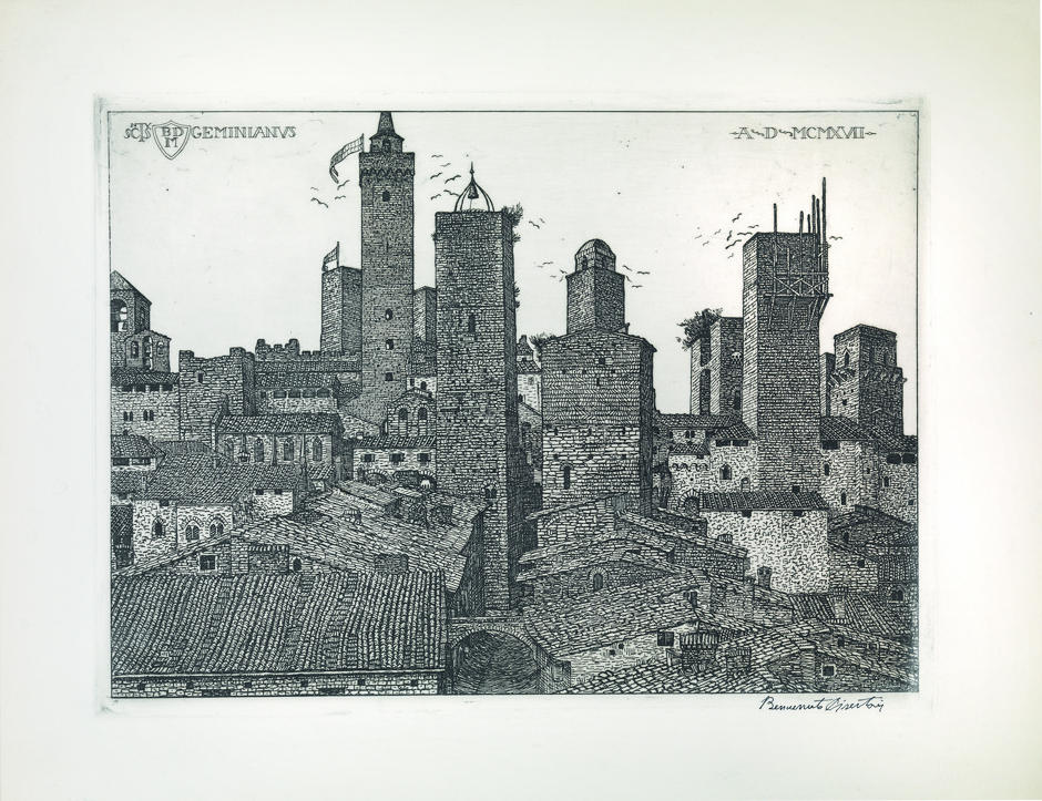 Benvenuto Disertori TORRI DI SAN GIMIGNANO. 1917 Acquaforte e bulino. mm...