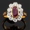 centro rubino di taglio ovale contornato da dieci diamanti per complessivi ct 0,70 ca