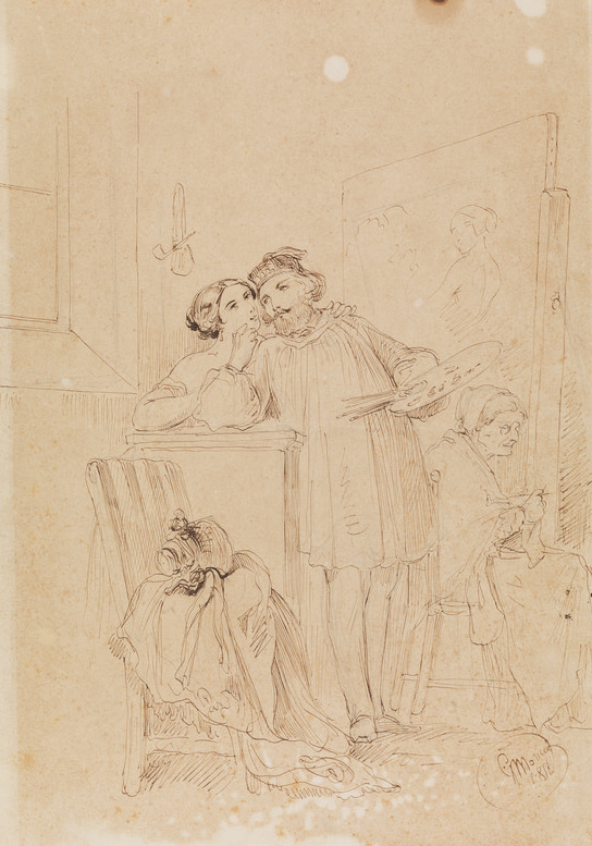 Giuseppe Moricci ARTISTA, MODELLA E ANZIANA SIGNORA NELL’ATELIER Penna e...