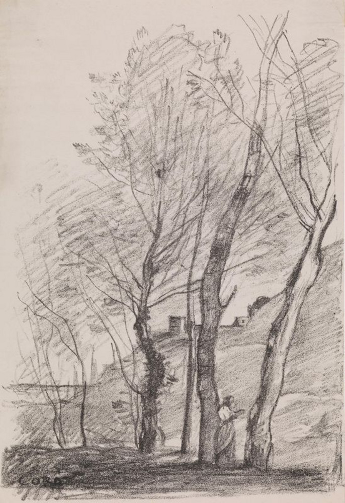 Jean Baptiste Camille Corot LA LECTURE SUR LES ARBRES. 1874 Autografia. mm...