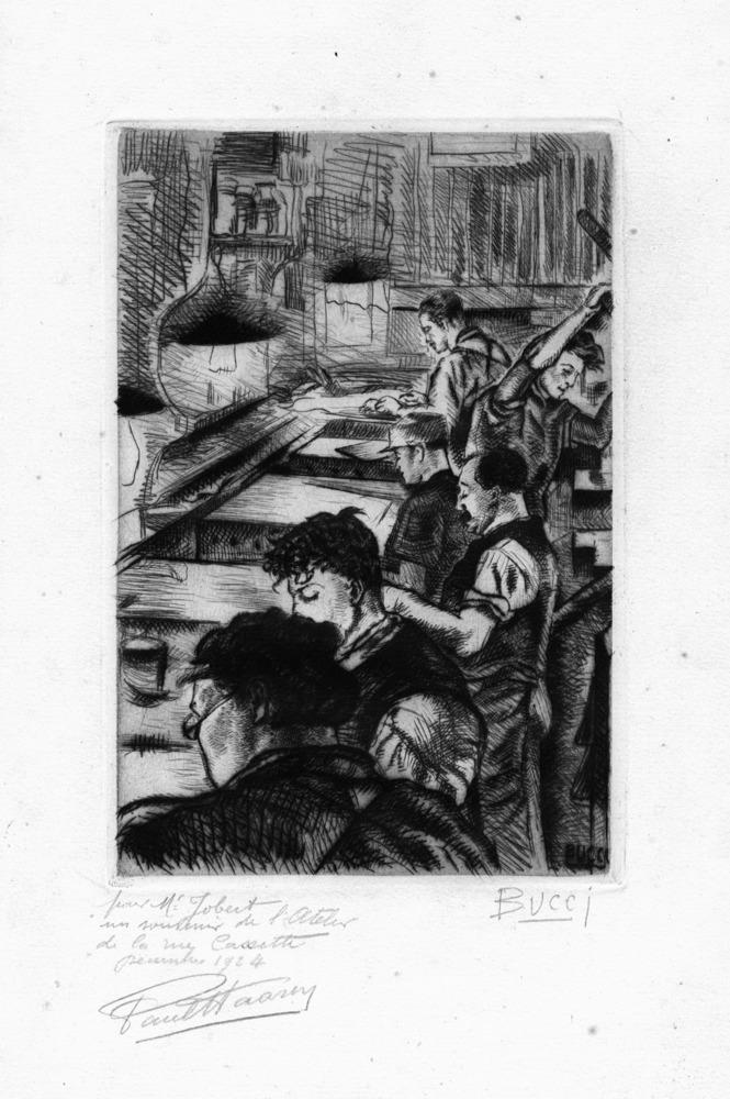 Anselmo Bucci STAMPERIA PARIGINA D’ACQUEFORTI. 1924 Puntasecca su rame. mm...