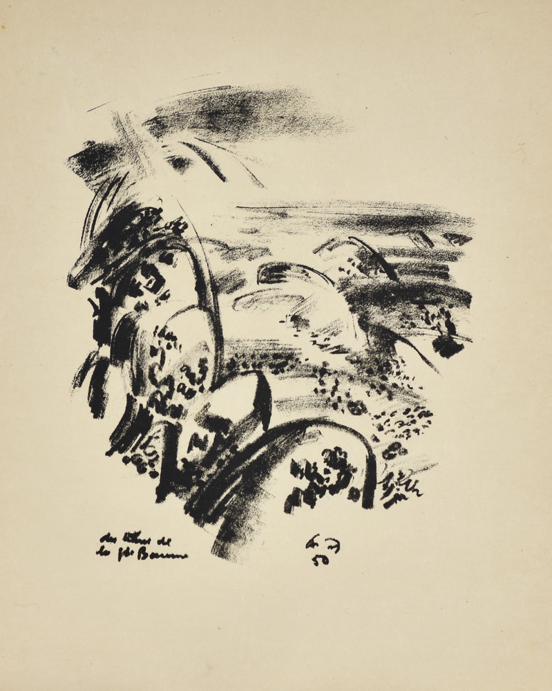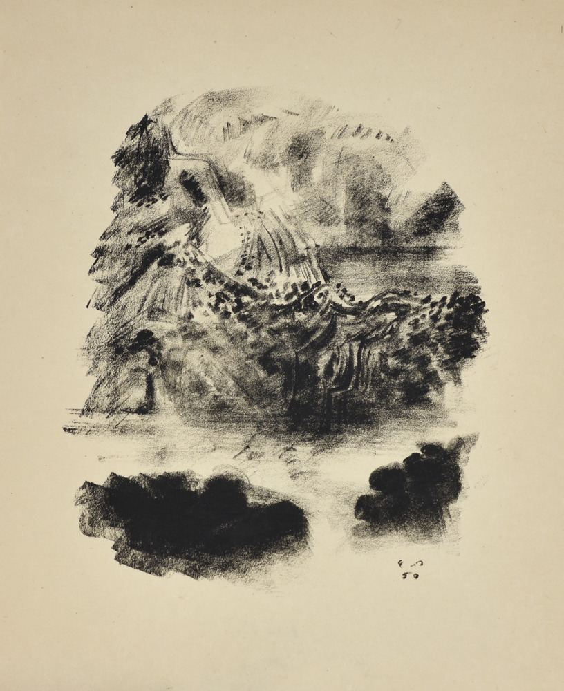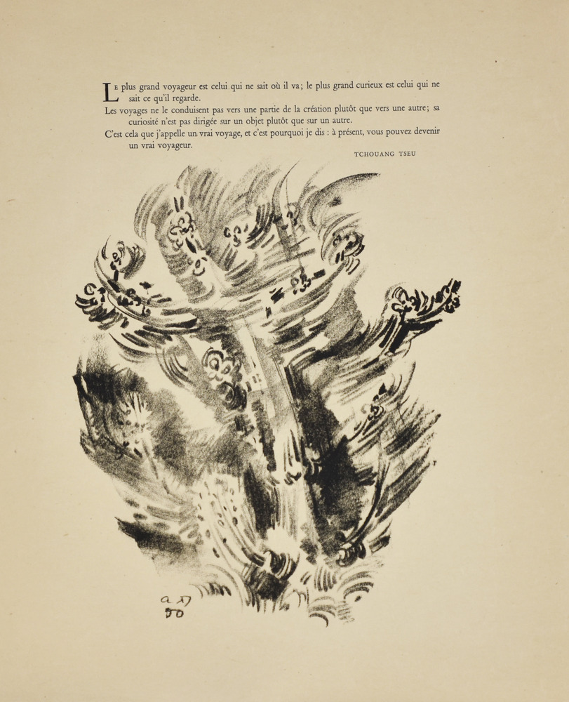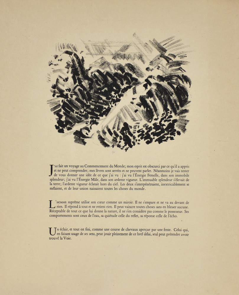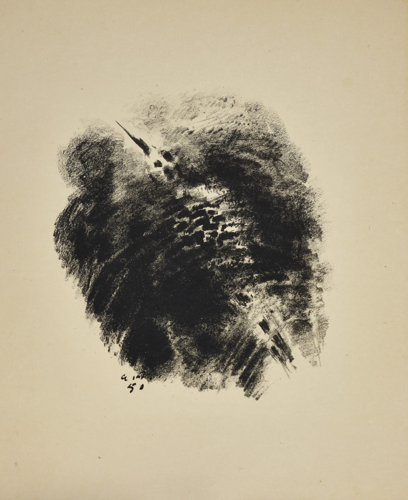 André Masson SUR LE VIF. 1950 Serie completa di 17 litografie in nero entro la cartella editoriale. mm 505x415 ciascuna. Quarto esemplare numerato delle 5 copie de chapelle stampate su Japon à la forme da Léo Marchutz per Éditions de la Galerie Louise Leiris di Parigi il 31 maggio 1950 . Margini editoriali. Alcuni difetti nella cartella.