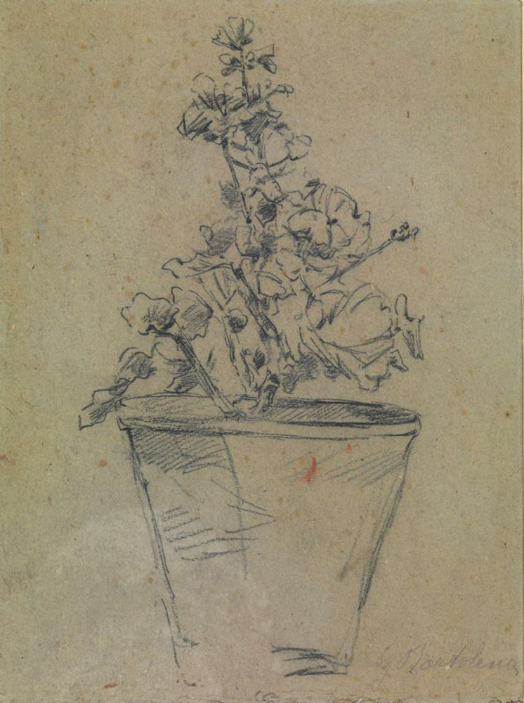Lotto 84 | Giovanni Bartolena CONTADINA VASO DI GERANI Gessetto nero su cartoncino. mm...