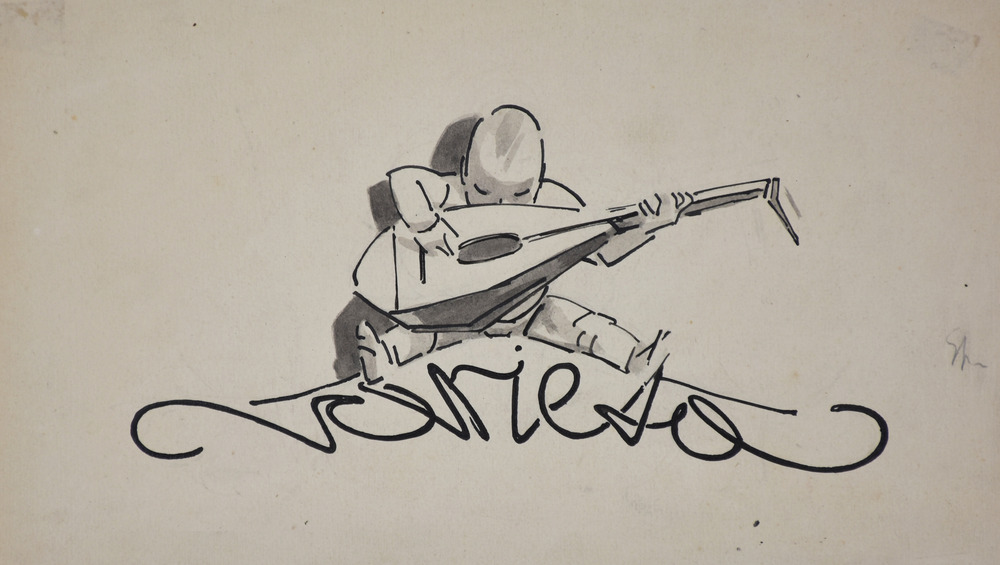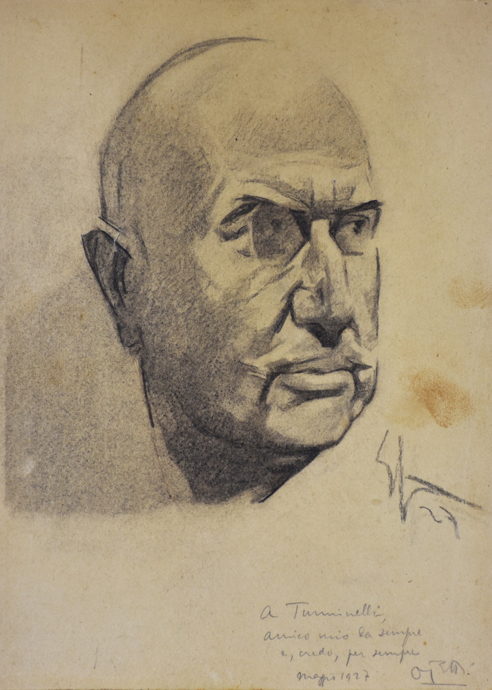 Enrico Sacchetti QUATTRO DISEGNI Ritratto di Luigi Pirandello. Gessetto nero su cartoncino. Firmato e datato “26”. mm 270x202. Ritratto di Ugo Ojetti. Gessetto nero su cartoncino. Firmato e datato “27”. Dedica autografa. mm 300x217. Ritratto di Beniamino Gigli. Gessetto nero. Firmato. mm 185x150. Testatina per “Varietà”. Inchiostro e acquerello nero. Firmato. mm 165x283.