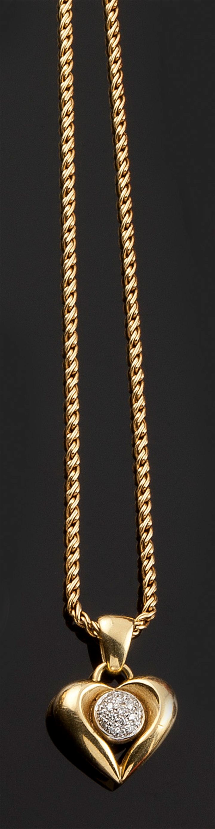 Collana in oro giallo con pendente a forma di cuore trattenente nella parte centrale