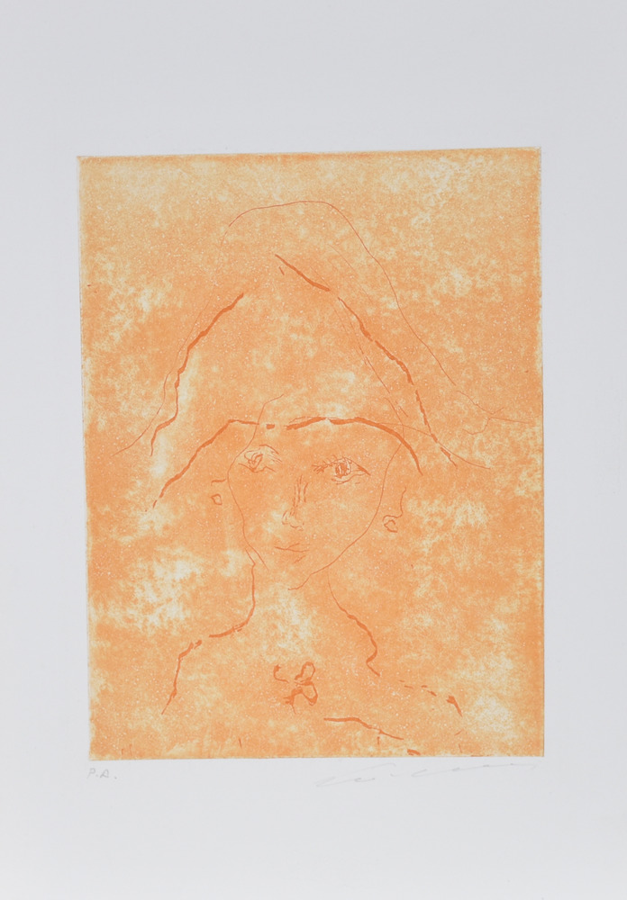 Ernesto Treccani Francesca acquaforte acquatinta a due colori su carta, cm 50x35 (lastra cm 32,5x24,5) esemplare prova d'autore sul fronte: firma