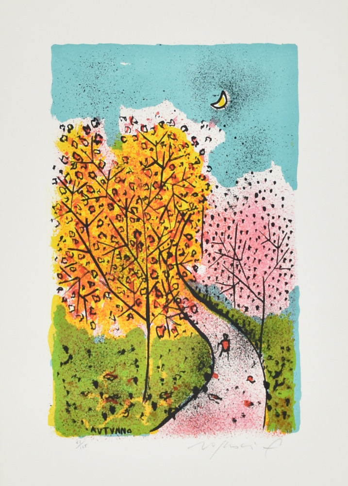 Franco Rognoni Autunno litografia su carta, cm 35x25 esemplare 63 su 125 sul...
