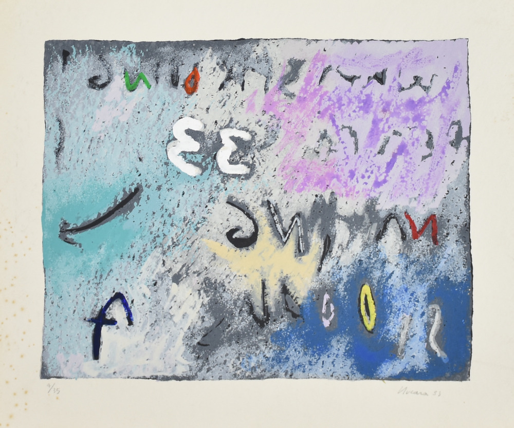 Renzo Nucara Senza titolo serigrafia su cartoncino, cm 38x45 esemplare 4 su 35 sul fronte: firma e data eseguita nel 1983 sono presenti tracce di umidità