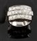 Anello in oro bianco, a fascia, composto da file di diamanti taglio brillante