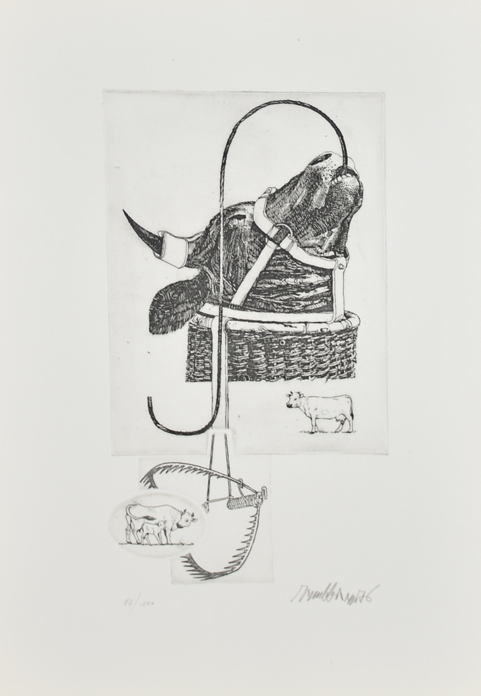 Valeriano Trubbiani 5 Fasi per la Tecnica del Supplizio incisione su carta, cm 50x35 (lastra cm 34,5x20) esemplare 84 su 100 sul fronte: firma e data eseguita nel 1976