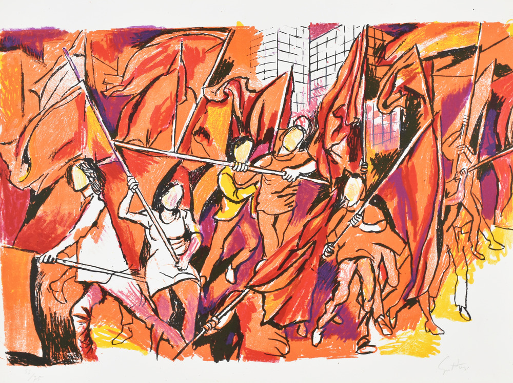 Renato Guttuso Lo mismo en otras partes litografia su carta, cm 47,5x62,5...