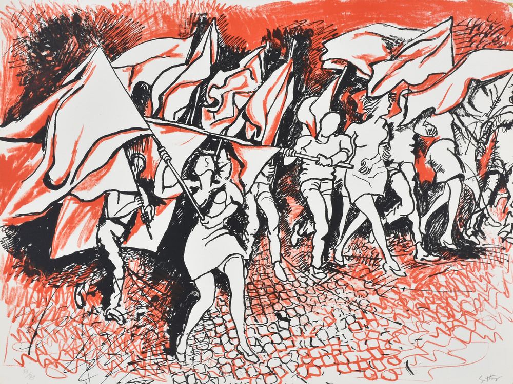 Renato Guttuso La gioventù con bandiere litografia su carta, cm 47,5x62,5 esemplare 55 di 75 sul fronte: firma eseguita nel 1968 Edizione Teodorani, Milano