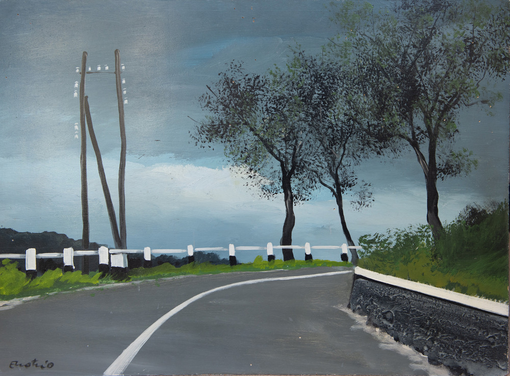 Enotrio Pugliese STRADA STATALE N 19 olio su compensati, cm 50x70 sul fronte:...