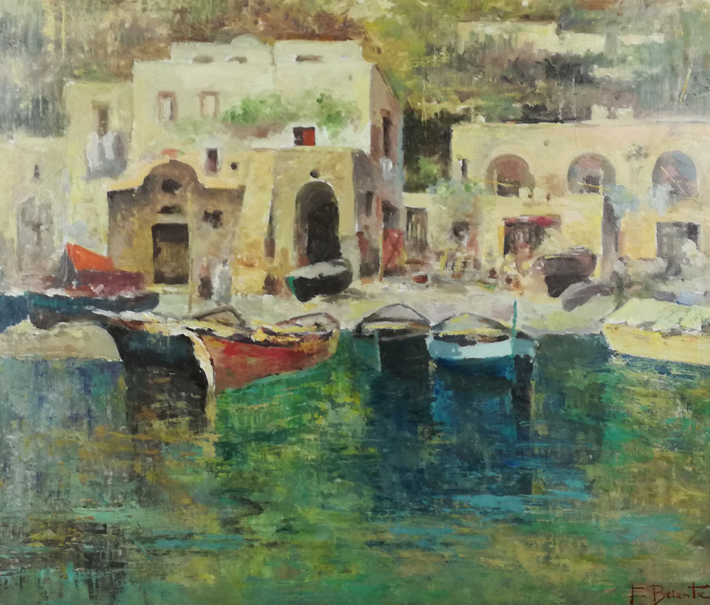 Ezelino Briante Marina con barche olio su tela, cm 61x51 sul frote: firma...