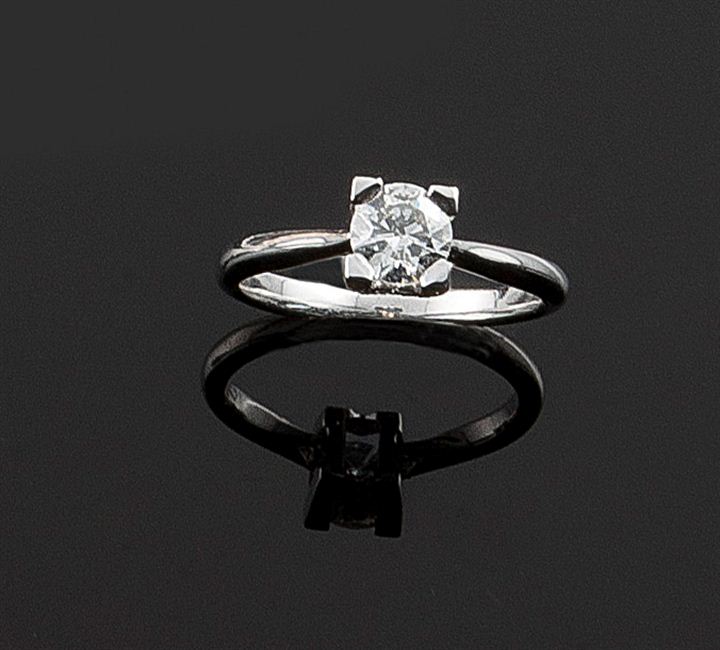 ANELLO Anello in oro bianco con al centro diamante solitario taglio brillante...