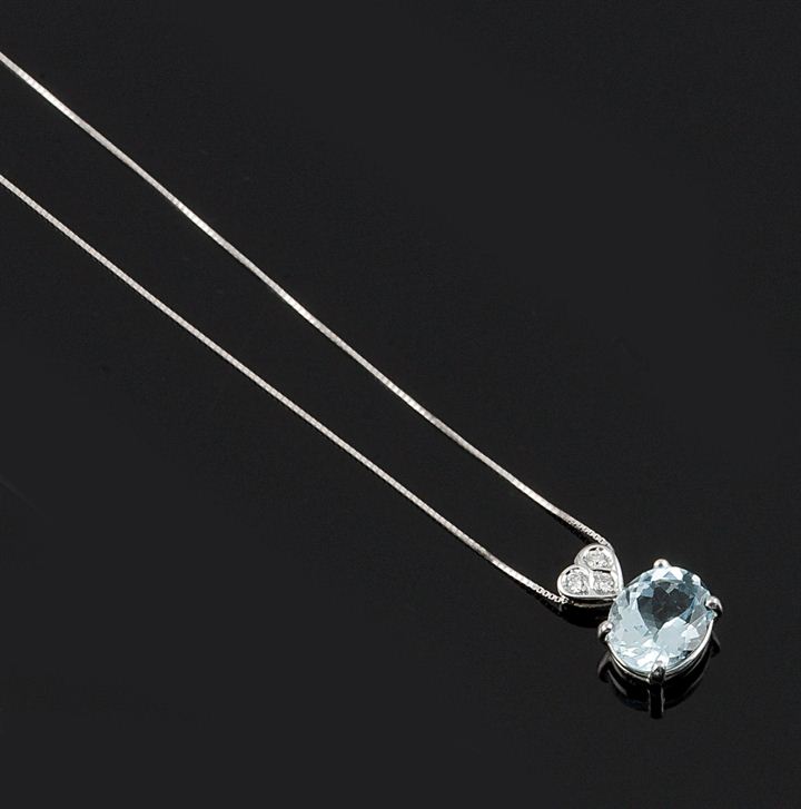Lotto 1044 | CATENA CON CIONDOLO Catena con ciondolo in oro bianco e acquamarina taglio...