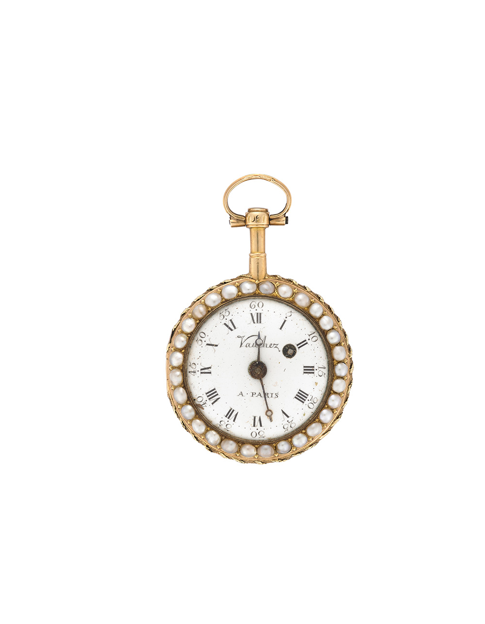 VAUCHEZ A PARISOrologio da tasca da donna in oro 18K decorato con perle e...
