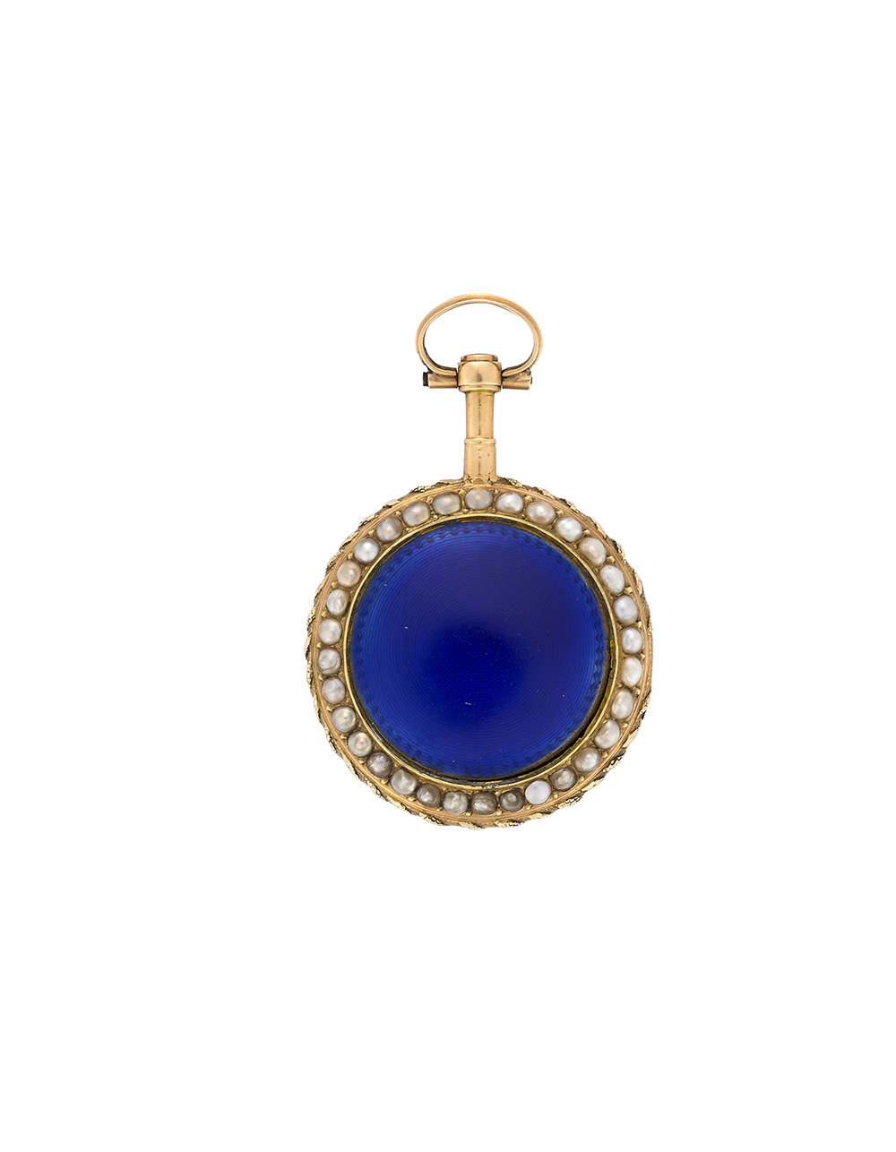 Orologio da tasca da donna in oro 18K decorato con perle e smalto blu