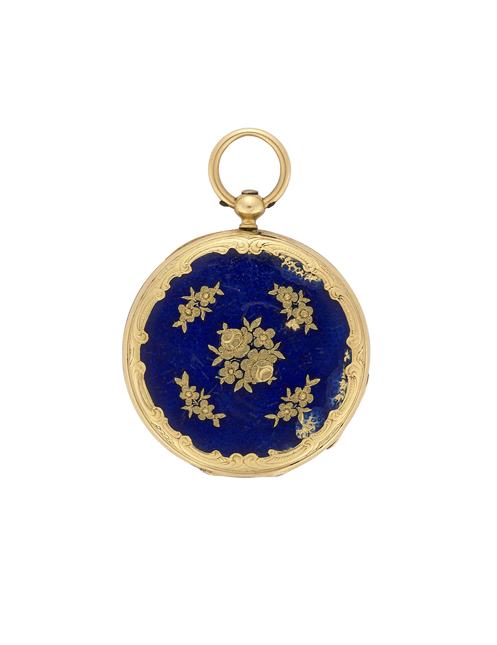 Orologio da tasca da donna in oro 18K cassa decorata con smalto blu