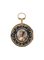 Lady's 18K gold pocket watch decorated with miniature framed by a silver ring and small diamonds