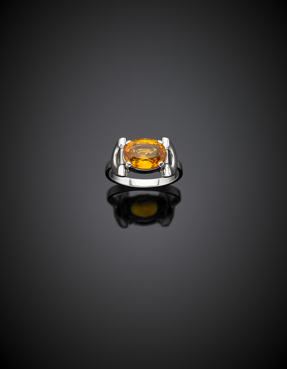 Lotto 639 | Anello in oro bianco con uno zaffiro ovale giallo, g 4,50 misura...