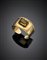 Bracciale alla schiava in oro giallo e quarzo citrino taglio a gradini di ct. 30 circa, g 50,46, h cm 3,50, diam. cm 5,70 circa.
