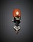 Yellow gold orange coral and enamel moor brooch, accented with a marquise diamond and seed pearl for the earrings, g 14.25, length cm 4.20 circa.