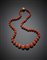 Collana in boule di corallo rosso arancione a scalare da mm 8.30 a mm 20.60 circa, chiusura in oro giallo, g 117,83.