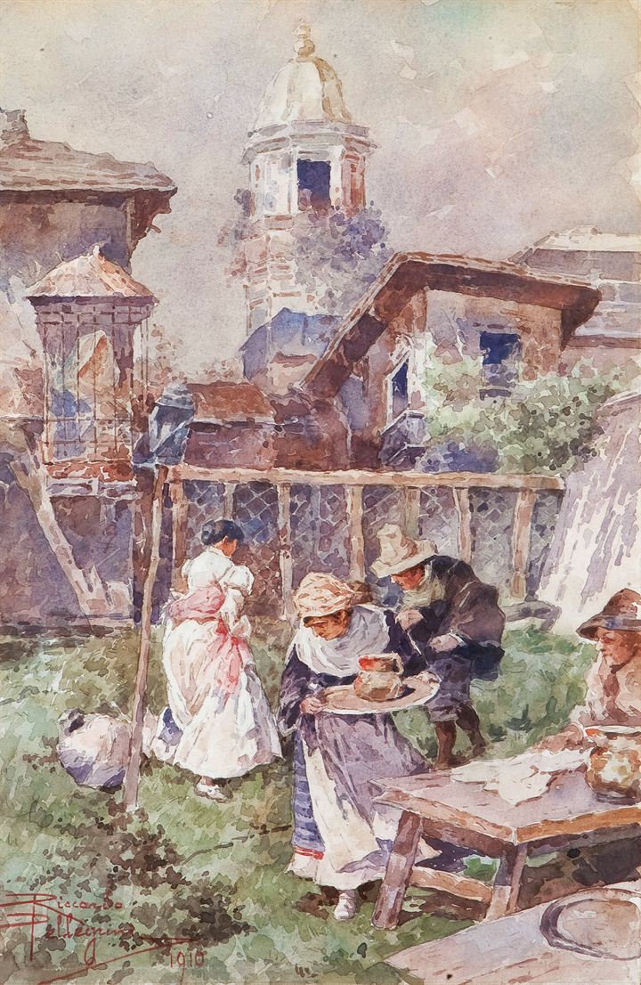 PELLEGRINI RICCARDO Milano 1863 - 1934 Crescenzano (MI) "Colazione in...