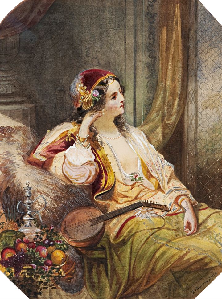 Lotto 50 | AUTORE NON IDENTIFICATO "La pausa" 1860 36x26,5 acquerello su carta Firma...
