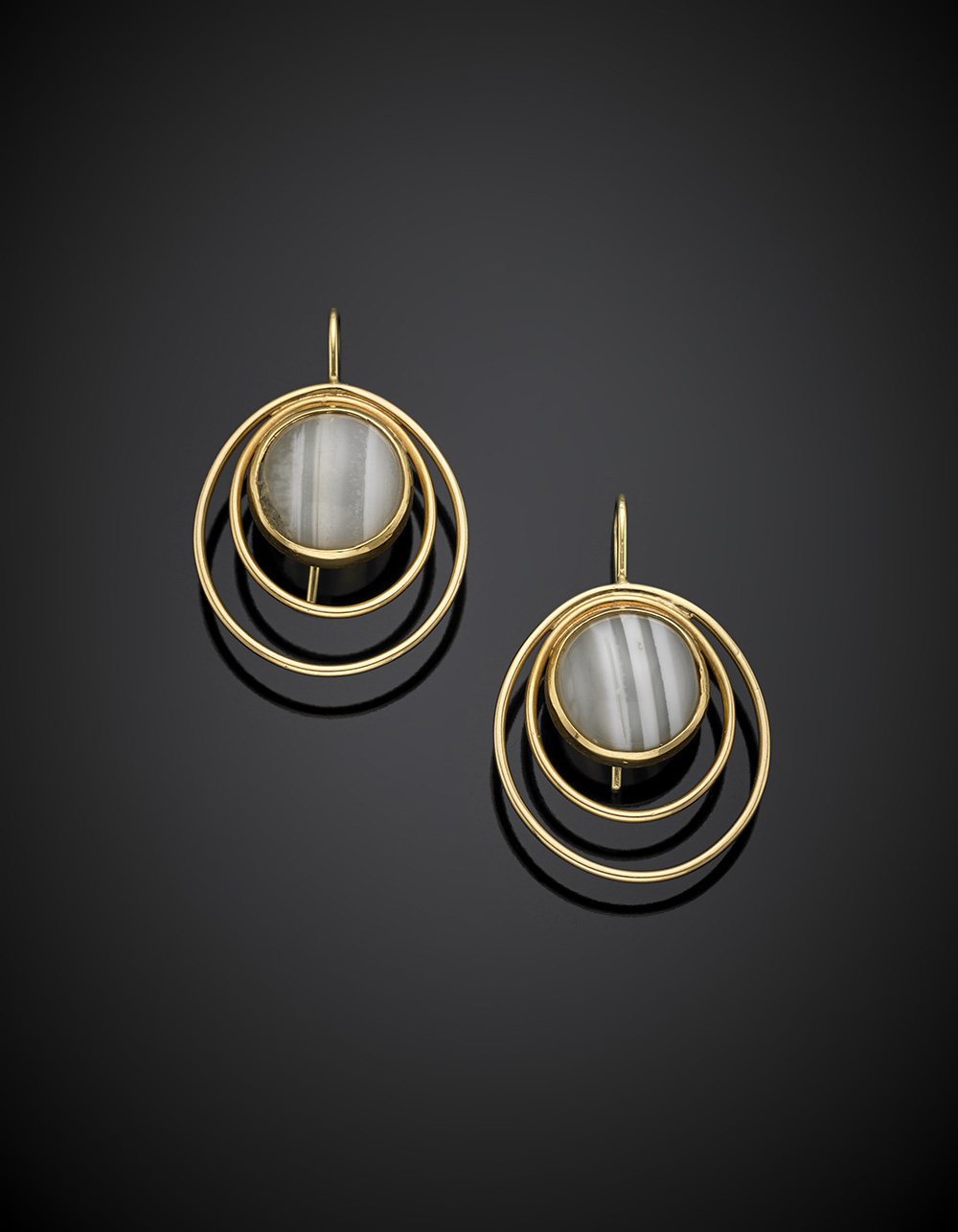Lotto 1073 | Orecchini pendenti in oro giallo a monachella e agata cabochon, g 13,94,...